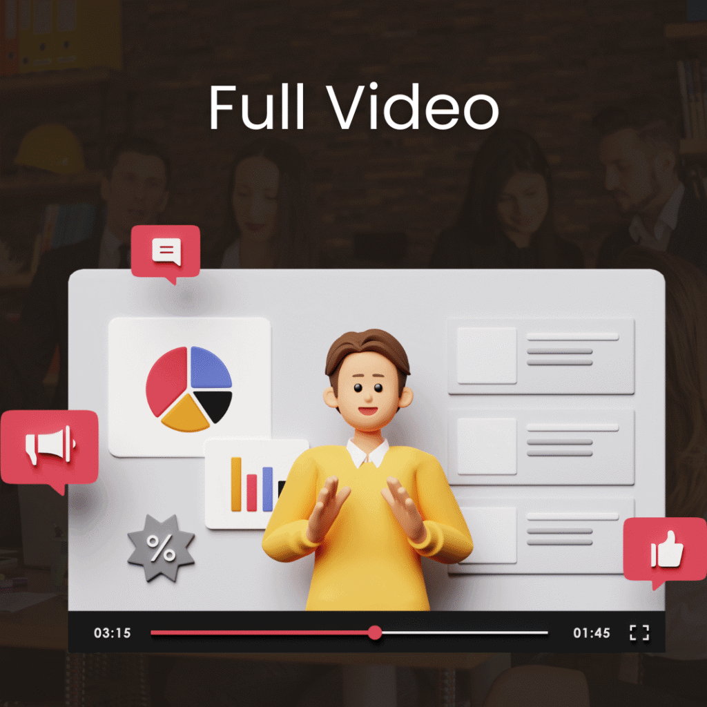 The style can vary according to the client’s needs, the complete video involves advanced elements such as mockups, transitions, characters, and/or 3D elements.